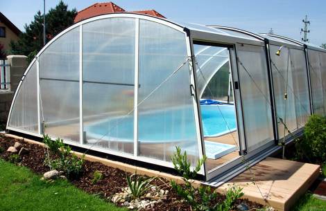 - zastřešení vám umožní koupat se v bazénu i v nepříznivém počasí (za deště, větru, apod.)