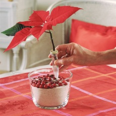 Poinsettie je rostlinou, kterou lze skvěle kombinovat s nejrůznějšími přírodními materiály, ale i extravagantními doplňky. Můžete zvolit prakticky cokoli, co máte zrovna po ruce a co se vám líbí. Jestliže patříte k milovníkům přírodních materiálů, použijte k tradiční rudé vánoční hvězdě například šišky, jablka, větvičky, ořechy nebo skořici. V takovém případě se hodí kytici naaranžovat do klasického keramického květináče nebo přírodního obalu v barvě terakoty.