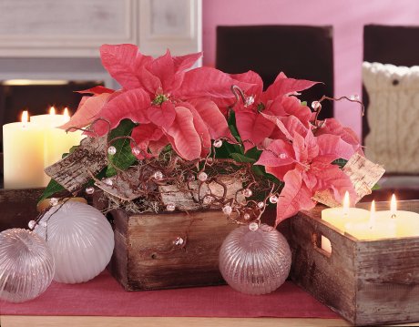 Ve studených zimních měsících si chceme doma více než kdy jindy navodit příjemnou hřejivou atmosféru. Stačí k tomu málo – příjemné světlo pocházející například ze svíček a dekorativní rostliny. Jelikož se poinsettie dnes pěstují v mnoha barvách a velikostech, jsou pro vánoční dekoraci jako stvořené. Jejich hvězdně tvarované okvětní listy se dají perfektně doplnit ostatními vánočními symboly.