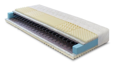 Luxusní oboustranná pružinová matrace je rozdělena do pěti anatomických zón, kostra Bonnell průměr drátu 2,4 mm.