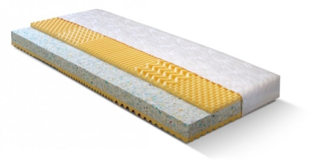 Jádro matrace je vyrobeno ze dvou typů PUR pěny o různé tvrdosti z jedné strany matrace je masážní profil druhá strana je hladká.