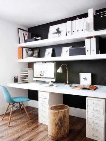 Častým problém domácích pracoven je umístění. Máte-li k dispozici v bytě či domě výklenek, využijte jej, je to trend, který se v současnosti těší velké oblibě. Takové umístění pracovny je ideální pro jednu osobu. Do poliček ve výklenku využijte spodní podsvícení, vypadá velmi zajímavě a vhodně doplní osvětlení stolní lampy.