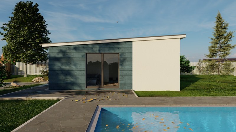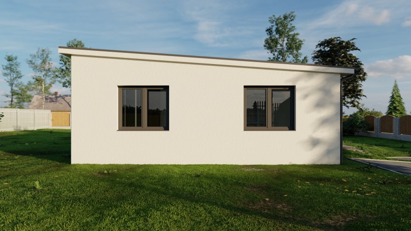 - typ a sklon střechy: pultová, 5 stupňů / sedlová