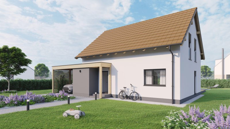 Tento dům umožňuje variantní provedení typu střechy, viz vizualizace.