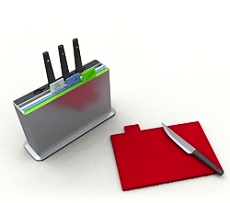 Dalším skvělým kuchyňským pomocníkem může být praktický stojánek s prkénky a noži. Díky němu má kuchař toto nezbytné náčiní vždy po ruce. Navíc stojan ukrývá hned čtyři polypropylenová prkénka a 4 nože, proto už nemusíte krájet maso a zeleninu na jednom prkénku. Každá krájecí deska má označení, k čemu je určena. Také nože mají barevné označení dle desek (zelenina, maso, ryby, pečivo). Tento stojánek je dílem designové společnosti Joseph Joseph a pořídíte jej za cca 2000 Kč.