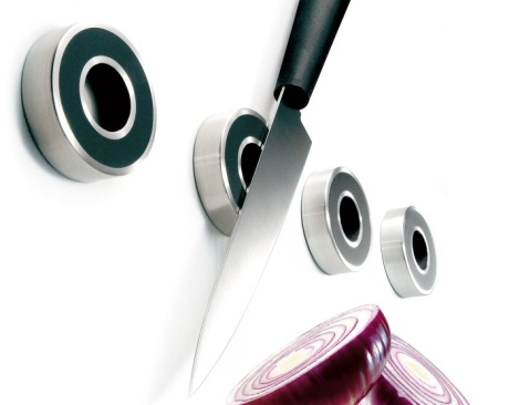 Zajímavým nápadem jsou také magnety na nože, které můžete v kuchyni rozmístit tak, abyste měli nejčastěji používané nože vždy po ruce. Magnety jsou kulaté a prodávají se v sadě o 4 kusech. Výrobcem je Eva Solo a tuto vychytávku seženete za 1800 Kč.