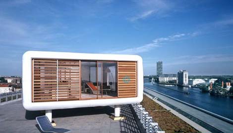 Aisslinger vymyslel koncept úsporného bydlení na plochých a nevyužitých střechách vysokých domů už před pár lety, předloni jej představil na několika výstavách moderní architektury, vedle Berlína nebo Amsterodamu také v rámci přehlídky Designblok 03.