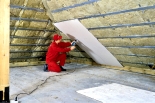 1. Důkladně změříme vnitřní rozteč mezi krokvemi, izolační desky řežeme vždy asi o 2 cm širší z důvodu řádného dotěsnění podél krokví.