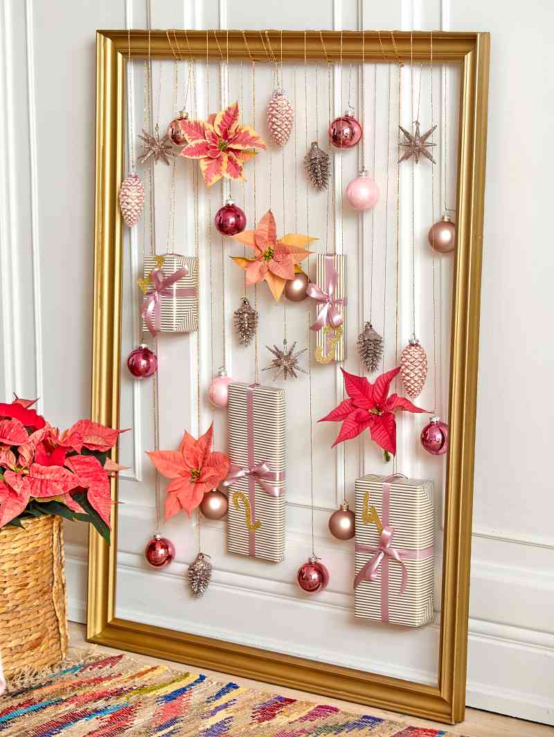 Mini poinsettie nemusí zdobit jen stůl – skvěle vypadají i zavěšené na větvi. Pastelové hvězdičky v drobných závěsných květináčích, doplněné skleněnými baňkami a šiškami, vytvářejí útulnou a slavnostní atmosféru. Perfektní řešení pro ty, kteří chtějí stylovou, ale prostorově nenáročnou dekoraci.