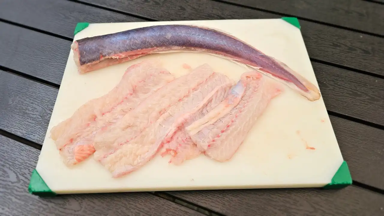 Filety z úhoře omyjeme, osušíme, lehce osolíme a pokapeme citronovou šťávou. Necháme je zakryté v lednici přes noc odležet.