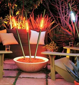 Ale pokud jste s osvětlením zahrady nepočítali při jejím zakládání, pak vás čeká poměrně velký zásah do již vzrostlé vegetace, což možná nebudete ochotni podstoupit. I v této chvíli se nabízí řešení. Jsou jím světla se zápichy, nebo trny chcete-li, která jednoduše zapíchnete, kam potřebujete. Výhodou je jejich variabilita, velkou nevýhodou, ale kabely, které musíte tahat za nimi a zásuvky, které na zahradě potřebujete k jejich zapojení.